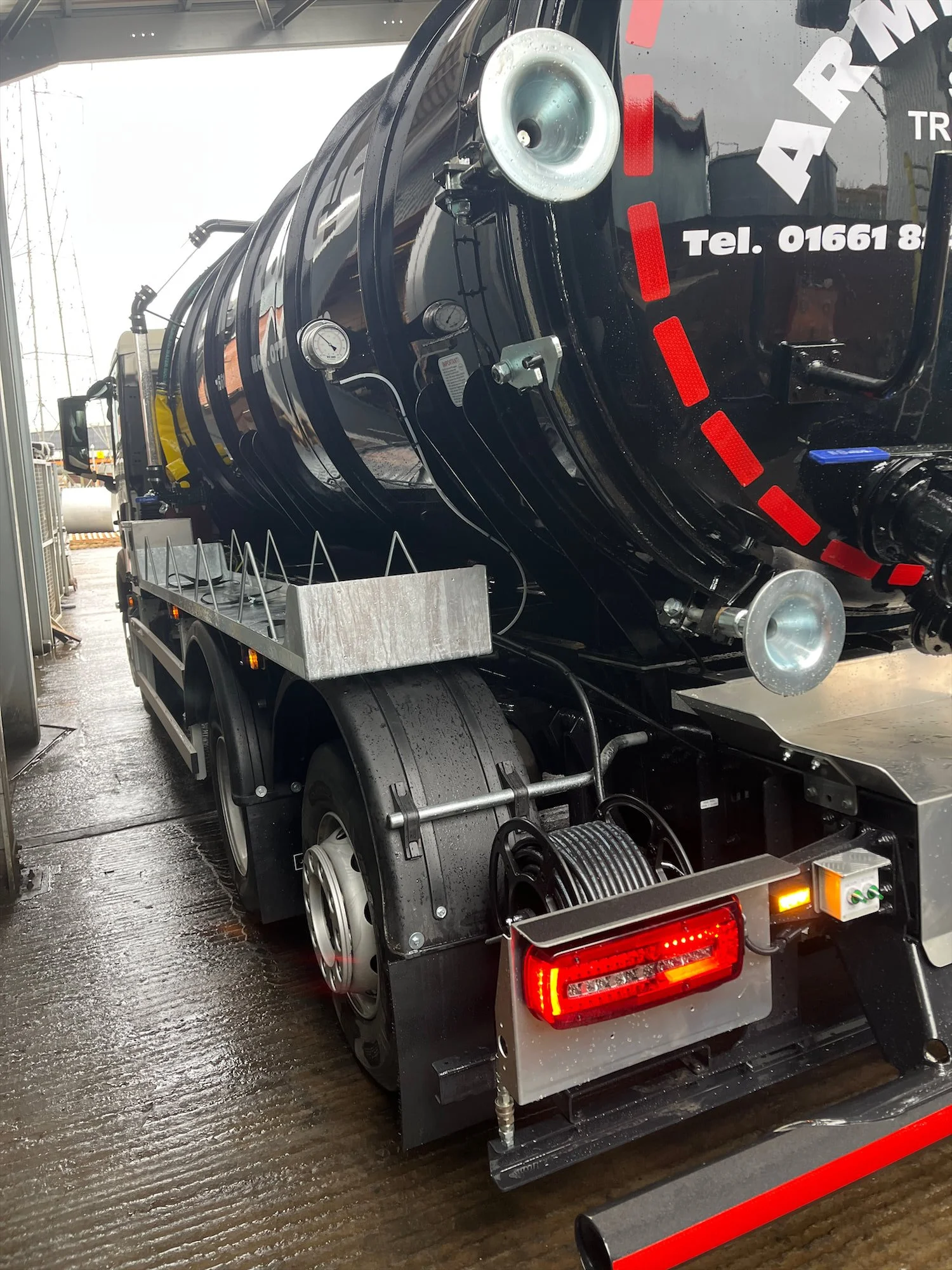 Our 3rd tanker since 2012 for Newcastle based Armstrong’s Effluent Disposal Ltd. This, a 3,200 gallon Vacuum Sewage Tanker (including a 200 gallon fresh water compartment) with HP Wash, hydraulically driven exhauster & water pumps - remote on/off switches, 50m x 3/8" HP hose on reel with hand lance, full rear door, galvanised hose trays, stainless tool box, beacons & work lights, sign writing - all mounted on a good used MAN supplied TGS 26.360 6x2 chassis/cab.